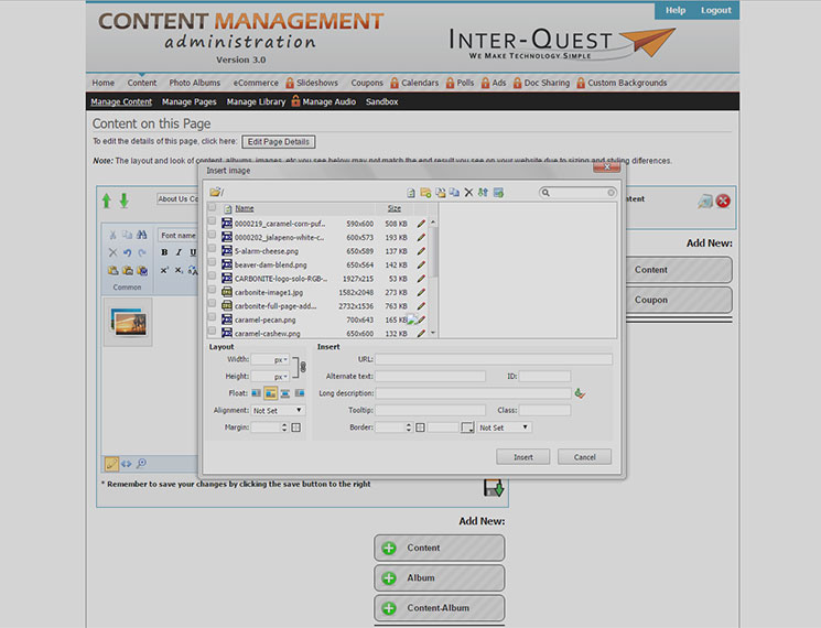 Depending on the browser you're using, there has been some issues with uploading images. There's been known problems with using Chrome. When trying to upload images using Chrome, after hitting the "Please select files to upload" button, the screen will become gray and will freeze